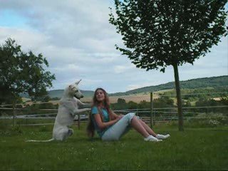 Première mini chorée sur musique pour Delilah ! J'étais très contente d'elle parce qu'elle a bien enchainé tous les tours sans décrocher. J'ai rajouté la musique au montage, mais il y a un léger décalage, dommage. <br />Après Biscotte est venue, donc quelques tournes et donne la patte !