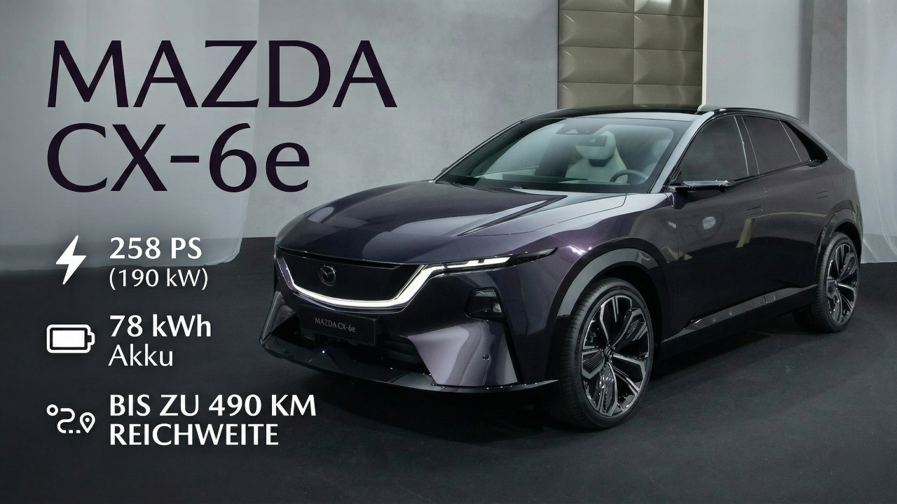 In diesem Video nehmen wir den brandneuen Mazda CX-6e unter die Lupe – das E-SUV mit 258 PS, 78 kWh Batterie und stylischem Design. Ist das Mazdas Durchbruch in der Elektromobilität?<br /><br />😇 Dein Abo hilft uns: https://tublo.eu/abonnieren <br />✅ Source: Mazda<br />➡️ Mehr Infos: https://www.tuningblog.eu/dies-u-das/2026-mazda-cx-6e-765520/ <br /><br />Der Mazda CX-6e bringt frischen Wind ins E-SUV-Segment. Mit 190 kW, 290 Nm Drehmoment und Heckantrieb beschleunigt er in 7,9 Sekunden auf 100 km/h. Die Reichweite liegt bei bis zu 490 km, geladen wird mit bis zu 195 kW. Innen erwarten dich hochwertige Materialien, ein riesiger Infotainment-Screen und innovative Gestensteuerung. Preislich startet der CX-6e bei 50.000 € inklusive 6 Jahre Garantie. Ob das Gesamtpaket stimmt, klären wir im Detail.<br /><br />#MazdaCX6e #ElektroSUV #Mazda2024 #CX6e #EAuto #Mazda6e #Elektromobilität #SUVvergleich #tuningblog - das Magazin für Auto-Tuning und Mobilität!