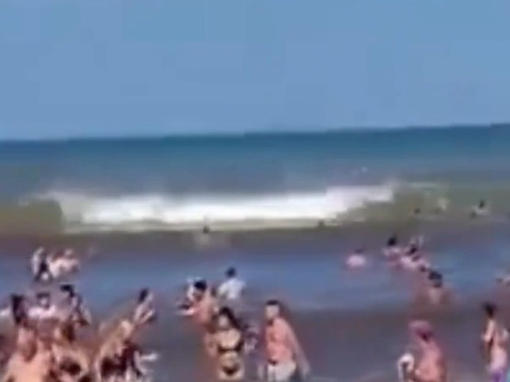 Eine sechs Meter hohe Monsterwelle traf den Badestrand Santa Clara del Mar in Argentinien. Ein junger Tourist starb dabei, weitere 35 Personen wurden verletzt.