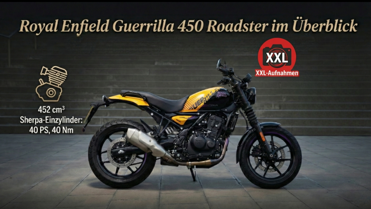 Die Royal Enfield Guerrilla 450 zeigt, was eine moderne Roadster können muss. In diesem Video erfährst du alles über Technik, Ausstattung und das Designkonzept des beliebten Modells.<br /><br />😇 Dein Abo hilft uns: https://tublo.eu/abonnieren <br />✅ Source: Royal Enfield<br />➡️ Mehr Infos: https://www.tuningblog.eu/motorrad/royal-enfield-guerrilla-450-2025-766186/<br /><br />Mit 40 PS und 40 Nm Drehmoment aus einem 452 cm³ großen Sherpa-Einzylinder bringt die Guerrilla 450 genau die richtige Mischung aus Alltagstauglichkeit und Fahrspaß. Drei Varianten – Analogue, Dash und Flash – bieten unterschiedliche Ausstattungslevels von klassisch bis digital. Dank Ride-by-Wire, 6-Gang-Getriebe, LED-Licht und bis zu 5.600 € Preis ist sie perfekt für Stadt, Land und mehr.<br /><br />#RoyalEnfield #Guerrilla450 #Roadster #MotorcycleLife #SherpaMotor #UrbanBike #RoyalEnfieldGuerrilla #tuningblog - das Magazin für Auto-Tuning und Mobilität!