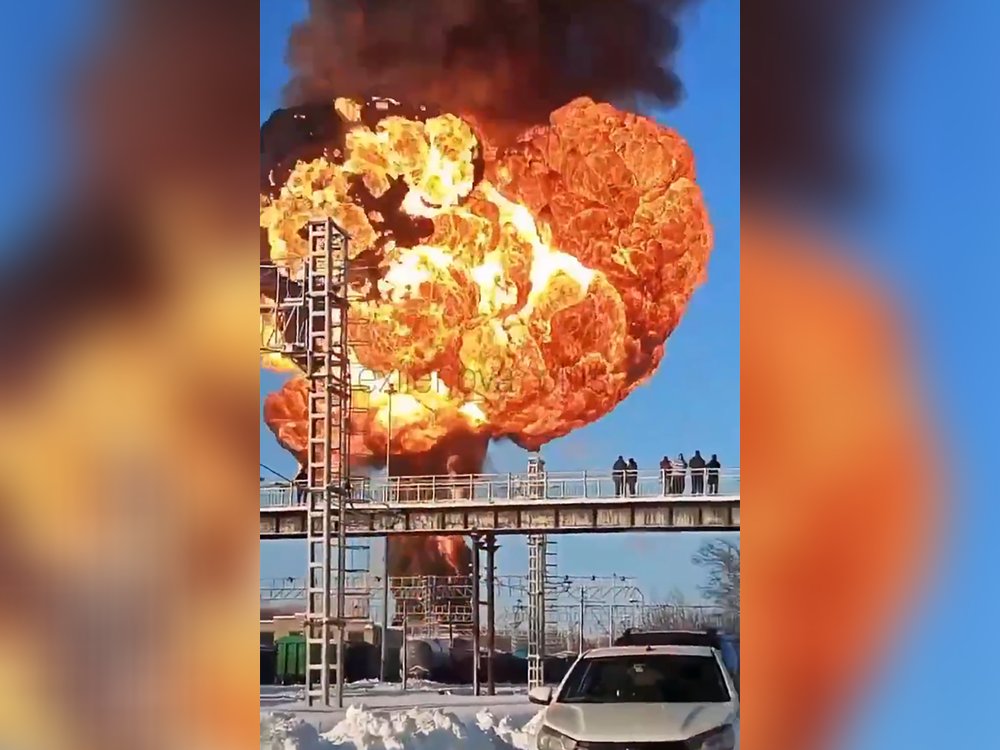 In russischen Tambov ist ein Treibstoffzug entgleist. Dabei explodierten mehrere Tankwaggons.