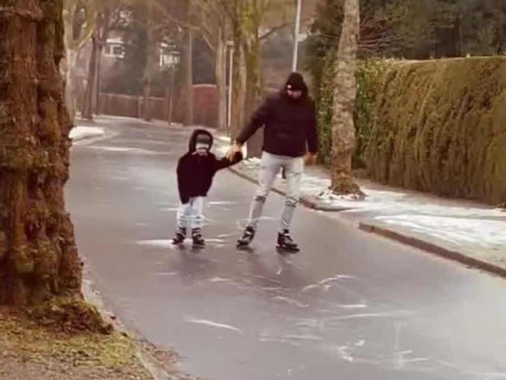 Im niederländischen Groningen machen die Menschen das Beste aus den spiegelglatten Straßen. Sie sind mit Schliittschuhen unterwegs oder nutzen Straßen zum Rodeln.