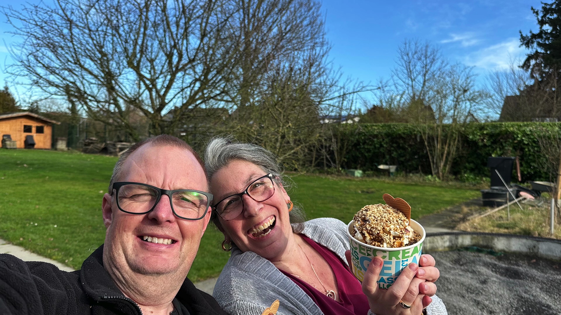 Es war Schönes Wetter und die Eissaison wurde eröffnet bei 14 Grade, Sonne und Blauem Himmel.