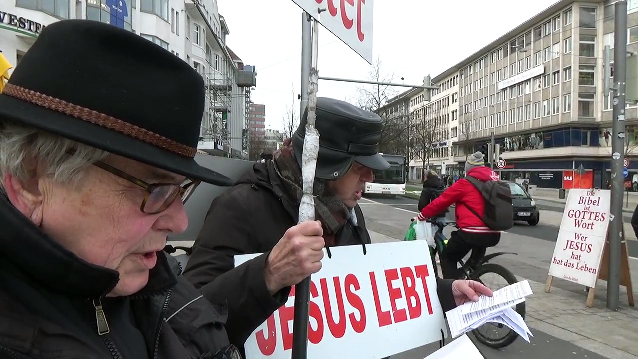 Die biblische Botschaft wird verkündigt durch Wort, Schrift und Schilder<br />Offenbar sind meine Videos noch gedrosselt. Bitte, unterstützt mit Kommentar, "like" und Teilen. Lieben Dank !<br />Prediger: Henning Westrup, Senior Straßenprediger, Germany<br />Infos zu Henning Westrup bei wikipedia, google etc<br /><br />Ihre wohlwollende Unterstützung gemäß 1 Korinther 9,4-14 bitte an<br />Konto: DE04 4785 0065 0100 2036 79<br />Inhaber: Henning Westrup<br /><br />Sie können dem Prediger folgen:<br />Telegram Predigten https://t.me/jesus_sohngottes<br />YouTube https://studio.youtube.com/channel/UCMBwvM-CUYBFvkZn4_tinDA