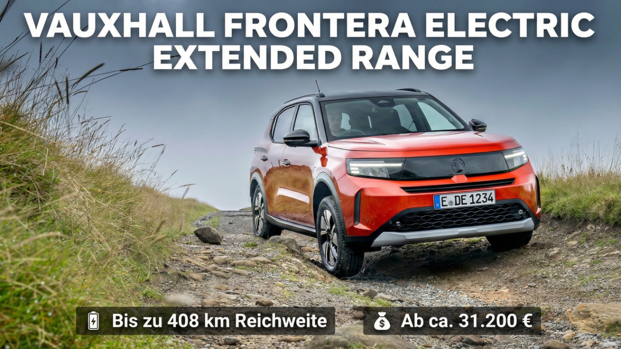 Der Vauxhall Frontera Electric Extended Range in Kanyon Orange bringt 54 kWh Akkukapazität und bis zu 408 km Reichweite mit. Im Video zeigen wir, was das kompakte Elektro-SUV technisch leistet und wie alltagstauglich es wirklich ist.<br /><br />😇 Dein Abo hilft uns: https://tublo.eu/abonnieren <br />✅ Source: Stellantis<br />➡️ Mehr Infos: https://www.tuningblog.eu/dies-u-das/opel-frontera-709309/<br /><br />Der neue Vauxhall Frontera Electric Extended Range ist die britische Version des Opel Frontera – technisch identisch, nur mit anderem Emblem. In der auffälligen Lackierung Kanyon Orange mit schwarzen Akzenten wirkt das vollelektrische SUV besonders markant.<br /><br />Mit 54 kWh Batterie steigt die WLTP-Reichweite auf bis zu 408 km. Geladen wird mit bis zu 100 kW, wodurch der Akku in rund 30 Minuten von 20 auf 80 Prozent kommt. Damit empfiehlt sich der Frontera nicht nur für den urbanen Einsatz, sondern auch für längere Strecken und Urlaubsfahrten.<br /><br />Neben dem Elektroantrieb überzeugt das Modell mit bis zu 1.600 Liter Ladevolumen, geteilter Rückbank (60:40) und cleveren Features wie Smartphone-Station, Wireless Charger und ergonomischen Intelli-Sitzen. In der Edition-Version startet der Extended Range bei rund 31.200 Euro.<br /><br />Im Video gibt es alle Infos zu Technik, Ausstattung, Reichweite und Preis – kompakt zusammengefasst und neutral eingeordnet.<br /><br />#VauxhallFrontera #FronteraElectric #ElectricSUV #KanyonOrange #Elektroauto #ExtendedRange #EVReview #tuningblog - das Magazin für Auto-Tuning und Mobilität!