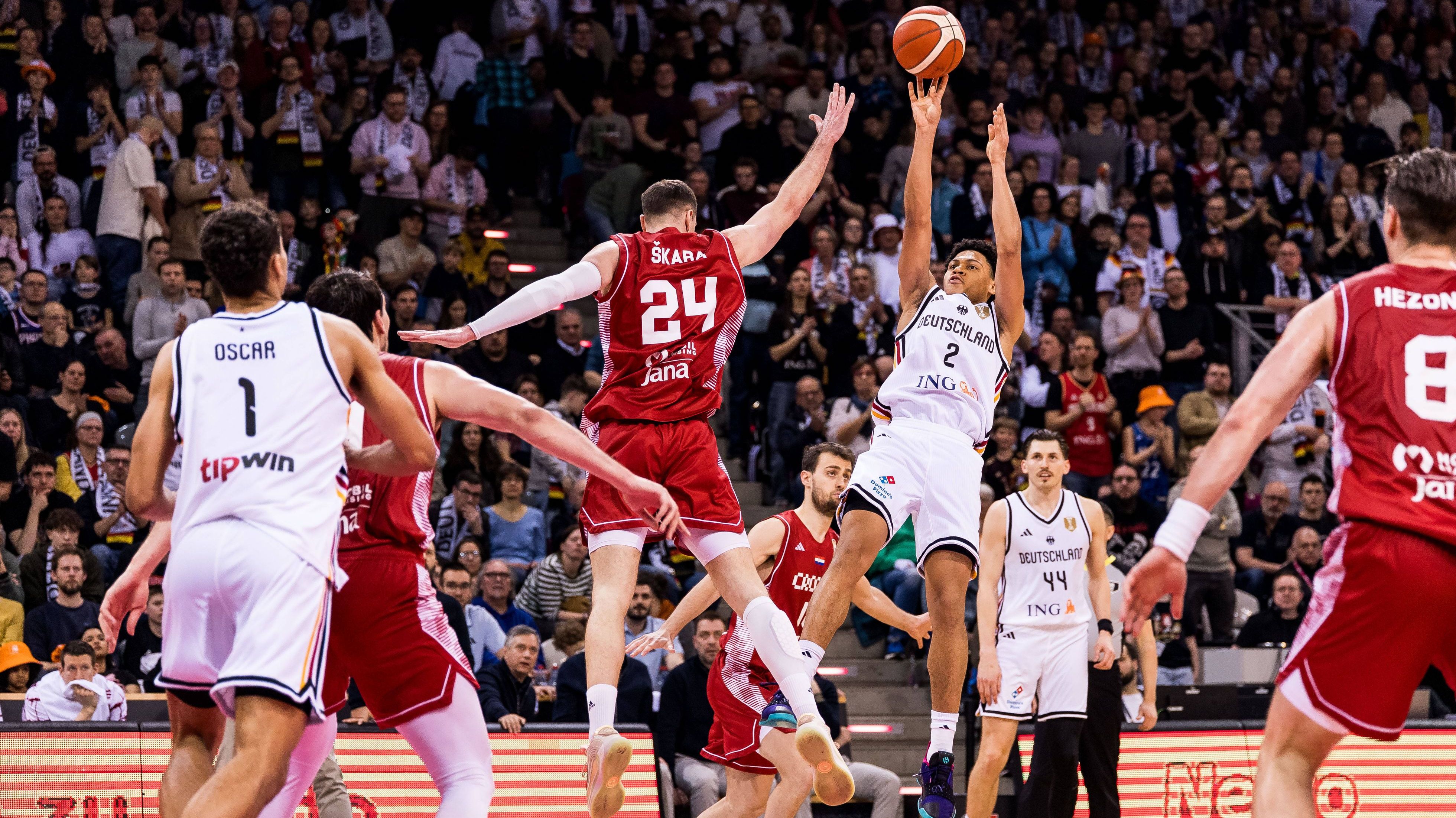 3:30 Minuten vor dem Ende war Deutschland noch mit zehn Punkten hinten, danach erzielte Kroatien keinen Punkt mehr und der amtierende Welt- und Europameister gewann die Partie am Ende nach Verlängerung mit 91:89. Hier sind die Highlights des Spiels Deutschland gegen Kroatien.