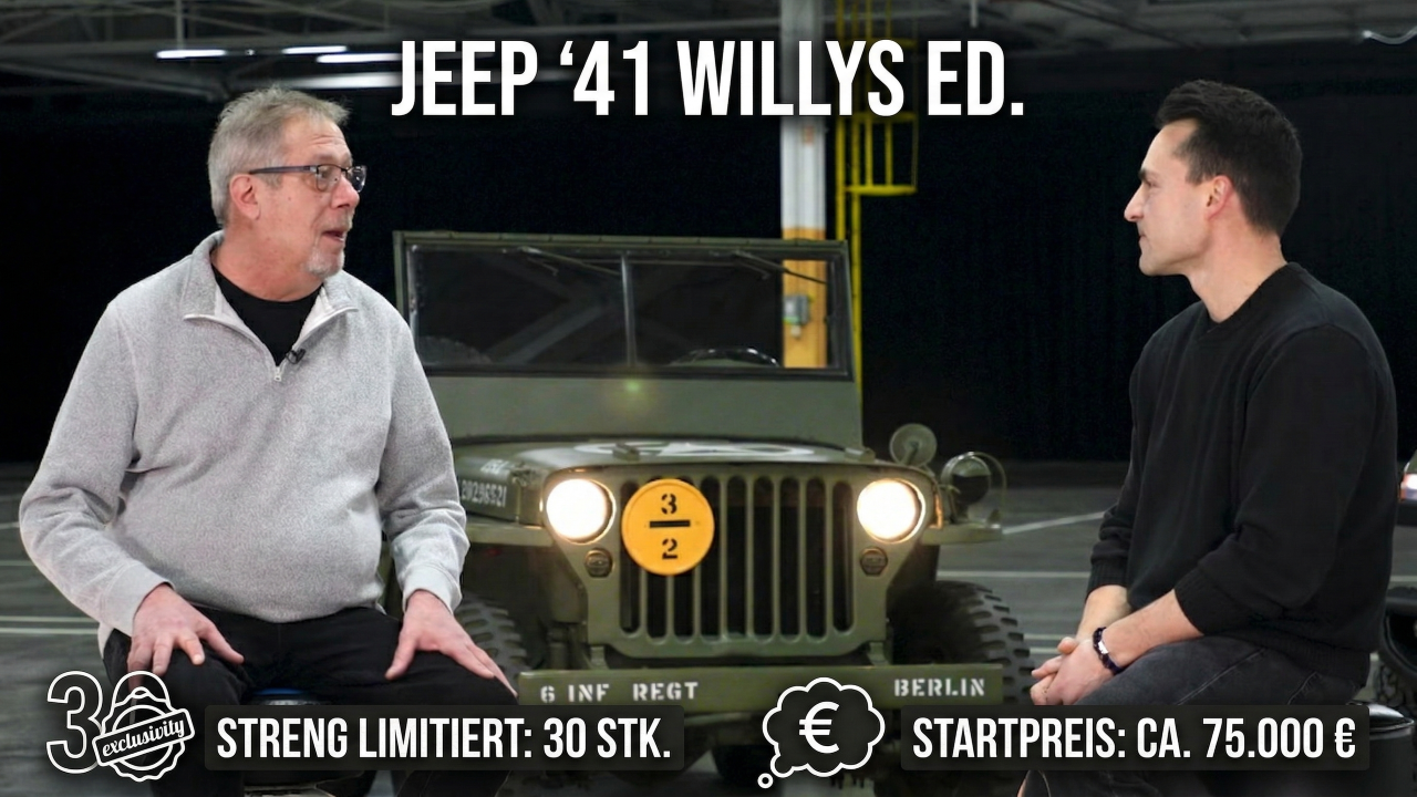 Der Jeep Wrangler 1941 Willys Edition ist eine moderne Hommage an den legendären Willys MB von 1941. Im Video zeigen Jeep-Designer Vince Galante und Historiker Brandt Rosenbusch die historischen Design-Details und die Geschichte hinter dieser limitierten Sonderedition.<br /><br />😇 Dein Abo hilft uns: https://tublo.eu/abonnieren <br />✅ Source: Jeep/Stellantis<br />➡️ Mehr Infos: https://www.tuningblog.eu/dies-u-das/jeep-wrangler-1941-willys-edition-730094/<br /><br />Mit der neuen Jeep Wrangler 1941 Willys Edition präsentiert Stellantis eine exklusive Retro-Version des ikonischen Offroaders. Die streng auf 30 Exemplare limitierte Edition für den indischen Markt basiert auf dem Wrangler Rubicon und trägt die spezielle Lackierung „’41 Green“, inspiriert vom Militärgrün der historischen Willys-Modelle.<br /><br />Optische Highlights sind das „1941“-Dekor auf der Motorhaube, robuste Offroad-Details und optionales Zubehör wie Sunrider-Dach, Seitenleiter und Dachträger. Elektrische Trittbretter erleichtern den Einstieg, während im Innenraum Retro-Haltegriffe und strapazierfähige Fußmatten mit rotem Jeep-Schriftzug für authentischen Offroad-Charme sorgen. Praktische Front- und Rückkameras mit Aufzeichnungsfunktion machen Trail-Abenteuer noch einfacher.<br /><br />Unter der Haube arbeitet ein 2,0-l Turbo-Vierzylinder mit 273 PS und 400 Nm Drehmoment. Die Kraft wird über ein 8-Gang-Automatikgetriebe an alle vier Räder übertragen – klassischer 4x4-Antrieb ganz im Sinne der Jeep-Tradition.<br /><br />Die Jeep Wrangler 1941 Willys Edition ist ausschließlich in Indien erhältlich und startet bei rund 75.000 € (ohne Steuern und Gebühren). Mit optionalem Zubehörpaket liegt der Preis bei etwa 81.000 €. Damit ist die Sonderedition rund 1.700 € teurer als ein regulärer Wrangler Rubicon – dafür aber ein seltenes Sammlerstück mit viel Offroad-Historie.<br /><br />#JeepWrangler #JeepWillys #Wrangler1941<br />#Jeep #Offroad #4x4 #SUV #JeepHeritage<br />#tuningblog - das Magazin für Auto-Tuning und Mobilität!