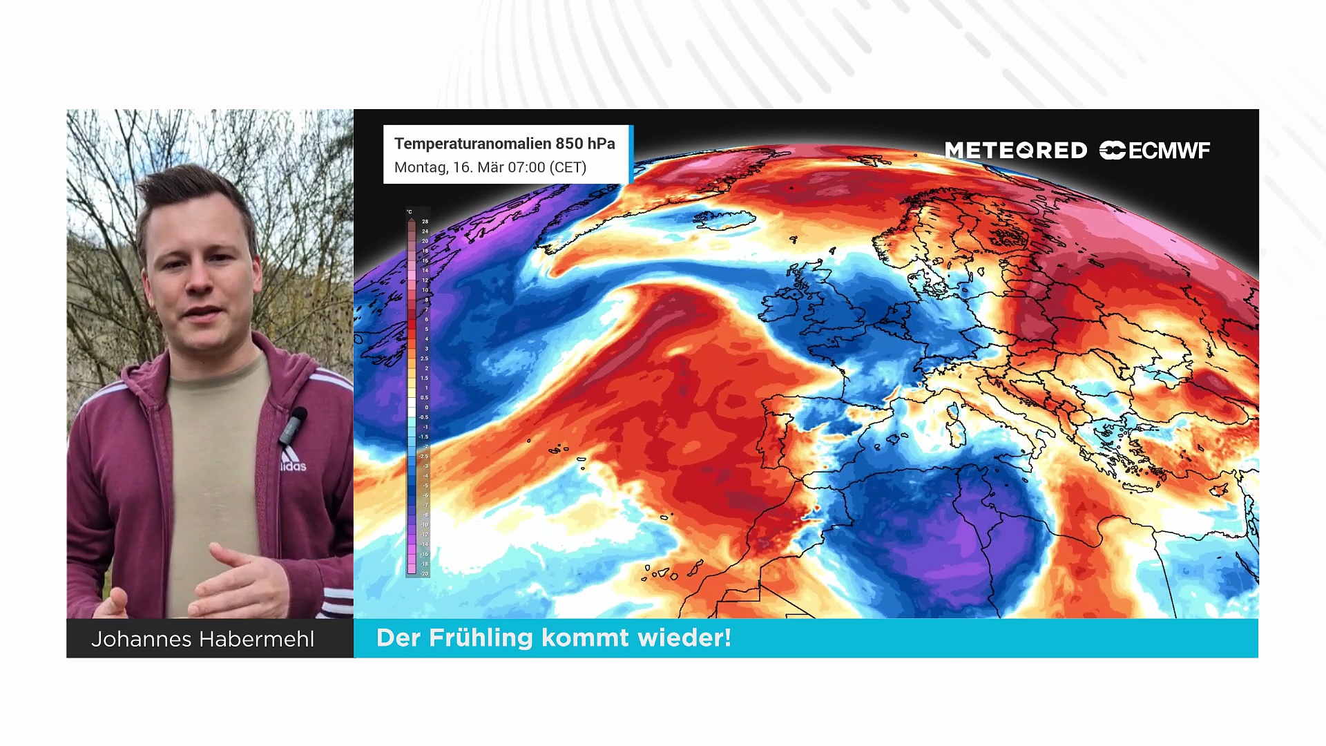 Wetterexperte Johannes Habermehl hat eine gute Nachricht. Der Frühling hat aktuell nur eine kurze Pause gemacht. In dieser Woche wird es wieder sonnig, zunehmend trocken und frühlingshaft warm werden.