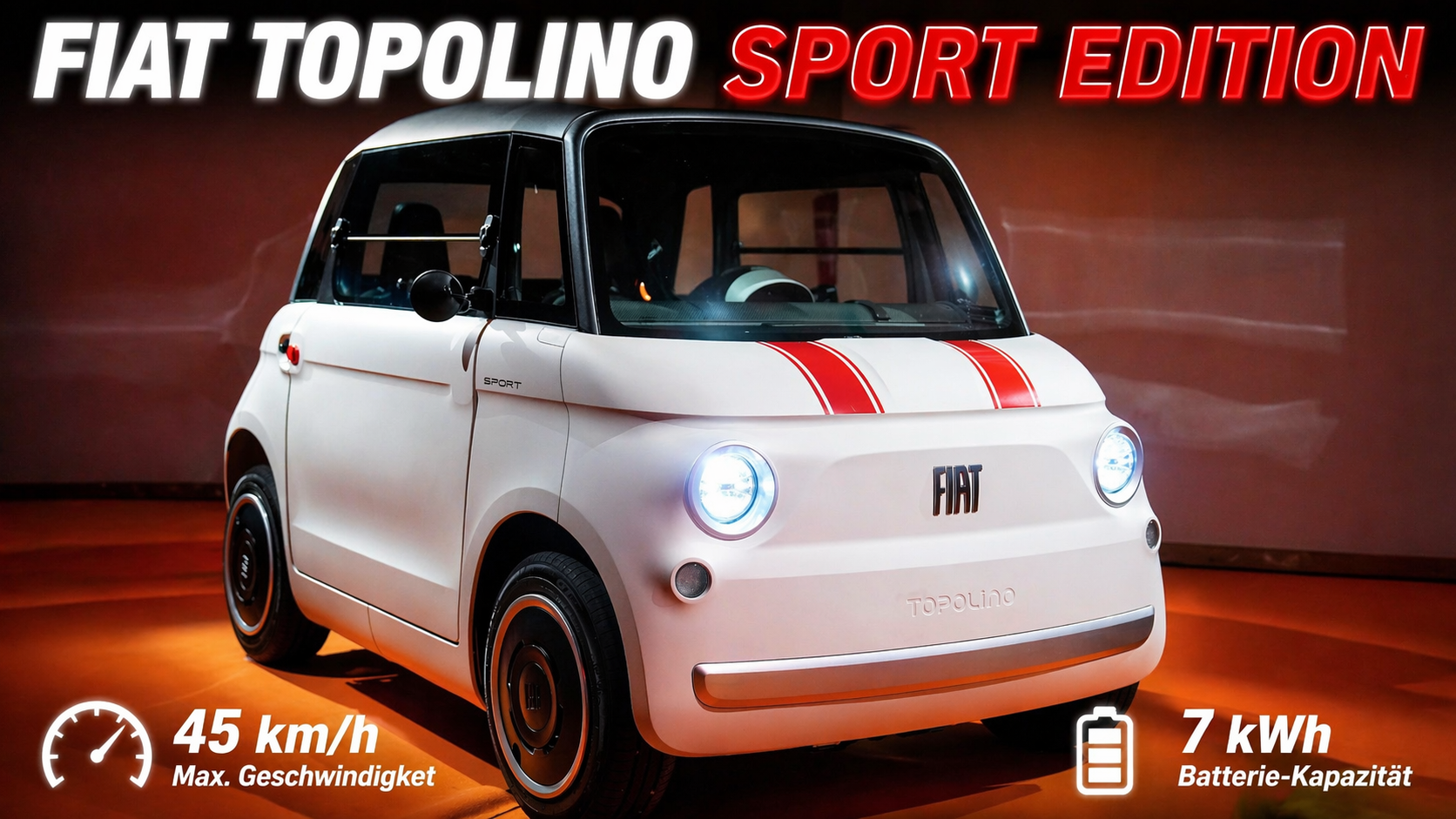 Der Fiat Topolino Sport Edition zeigt, wie viel Style in einem ultrakompakten Elektroauto stecken kann. In diesem Video werfen wir einen Blick auf Design, Technik und die Besonderheiten der sportlichen Variante.<br /><br />😇 Dein Abo hilft uns: https://tublo.eu/abonnieren <br />✅ Source: Stellantis <br />➡️ Mehr Infos: https://www.tuningblog.eu/e-scooter-atv-quad/fiat-topolino-sport-edition-777446/<br /><br />Die Sport Edition hebt sich mit cremeweißer Lackierung und roten Streifen deutlich vom Standardmodell ab und bringt frischen Wind in die Microcar-Klasse. Schwarze Felgen mit weißem Rand, schwarze Spiegel und dezente Sport-Details machen den kleinen Stromer optisch zum Hingucker. Technisch bleibt alles vertraut: 6 kW Leistung, 45 km/h Topspeed und rund 75 km Reichweite. Die 7 kWh Batterie lässt sich bequem in ca. 4 Stunden an der Haushaltssteckdose laden. Auch das überarbeitete Display und das größere Kombiinstrument sorgen für mehr Komfort im Alltag.<br /><br />#FiatTopolino #TopolinoSportEdition #Elektroauto #Microcar<br />#CityCar #UrbanMobility #Fiat #tuningblog - das Magazin für Auto-Tuning und Mobilität!