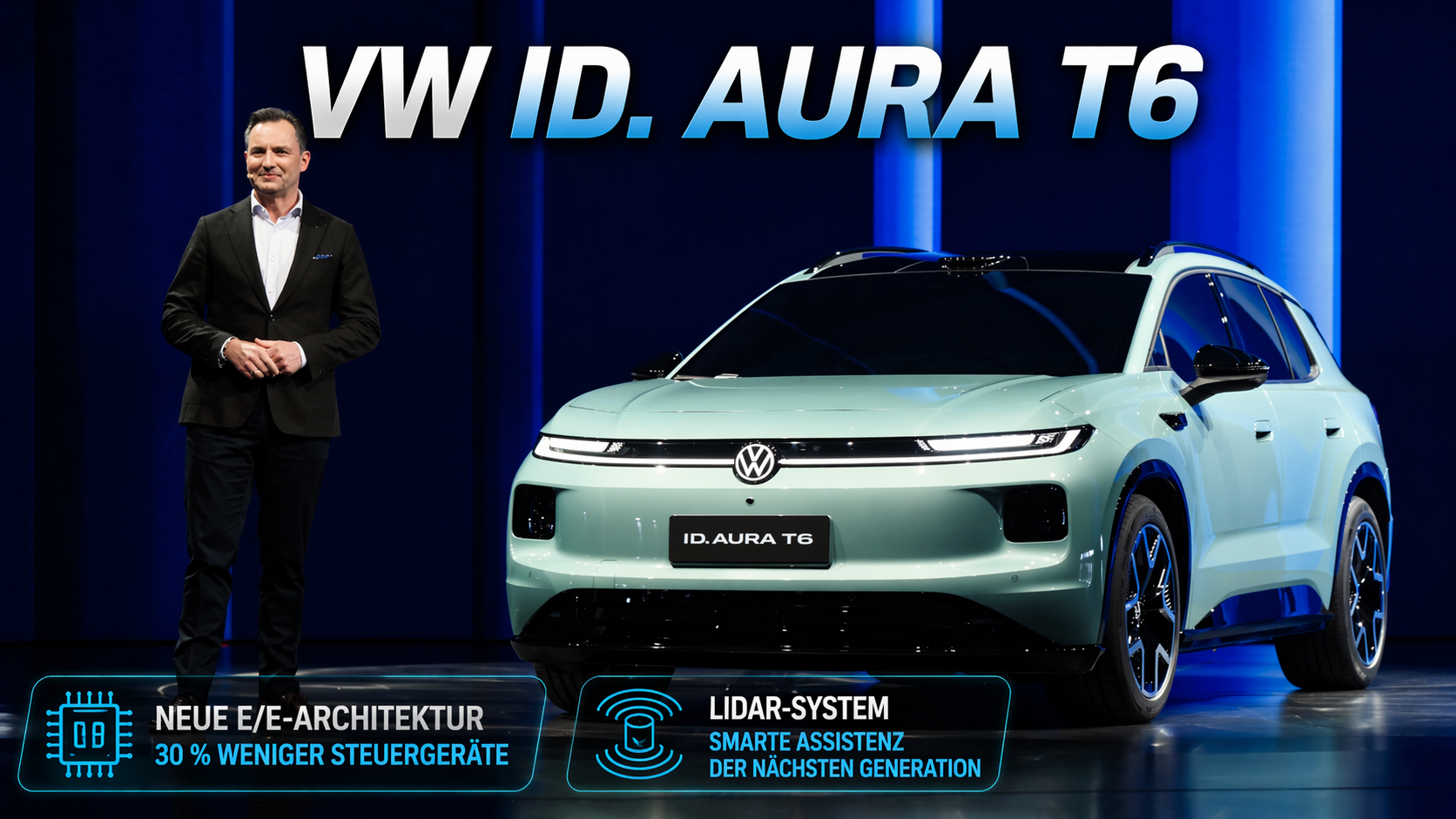 Der Volkswagen ID. Aura T6 feiert seine Premiere auf der Group Night der Auto China 2026 in Peking und gibt einen Ausblick auf die nächste Generation elektrischer VW-Modelle für den chinesischen Markt. Der neue Crossover kombiniert moderne E/E-Architektur, LiDAR-Technologie und ein eigenständiges Designkonzept.<br /><br />😇 Dein Abo hilft uns: https://tublo.eu/abonnieren <br />✅ Source: Volkswagen<br />➡️ Mehr Infos: https://www.tuningblog.eu/dies-u-das/vw-id-aura-t6-2-777277/<br /><br />Mit dem ID. Aura T6 bringt Volkswagen einen vielseitigen 5-Sitzer ins Rennen, der speziell für die Anforderungen in China entwickelt wurde. Die neue Plattform reduziert die Anzahl der Steuergeräte um rund 30 % und ermöglicht gleichzeitig fortschrittliche Features wie KI-basierte Cockpitfunktionen und OTA-Updates. Auch bei den Assistenzsystemen setzt VW neue Maßstäbe: Ein LiDAR-System sorgt für präzisere Umfelderkennung und bildet die Basis für moderne Fahrfunktionen im urbanen und überregionalen Verkehr. <br /><br />Optisch bewegt sich der Crossover zwischen SUV und MPV, mit klaren Linien, aerodynamischer Silhouette und moderner Lichtsignatur. Technische Details wie Leistung oder Reichweite sind noch nicht final bestätigt, doch der ID. Aura T6 ist Teil einer neuen Modellfamilie, mit der Volkswagen seine Position im wachsenden EV-Markt weiter ausbauen will.<br /><br />#Volkswagen #IDAuraT6 #AutoChina2026 #VW<br />#Elektroauto #EV #CarNews #Peking<br />#tuningblog - das Magazin für Auto-Tuning und Mobilität!