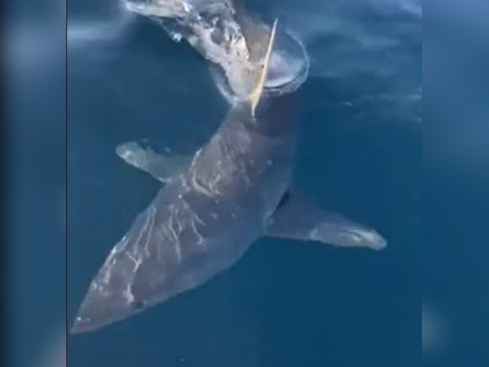 Forscher zeichnen erstmals Bilder von einem Hai auf, der von einem Boot angefahren wird
