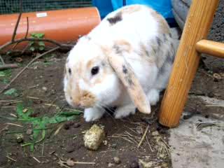 Kaninchen Pippin beim Futtern