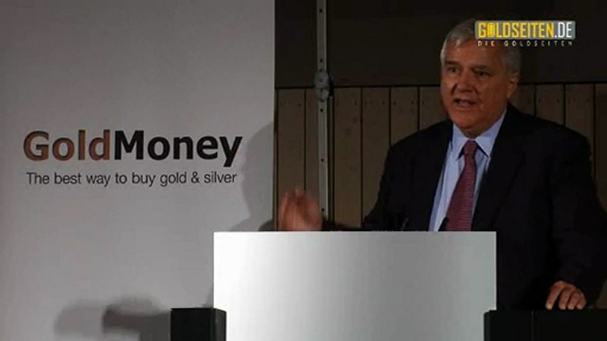 James Turk, Gründer von GoldMoney, spricht auf der Internationalen Edelmetall- und Rohstoffmesse München 2009 über den Bullenmarkt des Goldes.