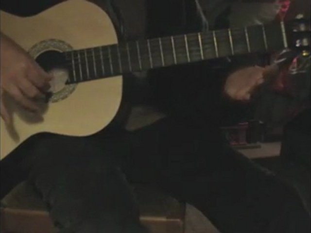 Zupfuebung auf den unteren beiden Saiten (Daumen/Zeigefinger) mit ersten Greifuebungen auf der ersten Saite (2. u. 4. Bund)