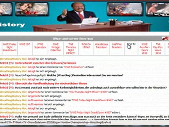 Link zu WrestlingHistory: http://wrestlinghistory.de.ms <br /><br />Dies ist eine seite zum Downloaden und anschauen von WWE, TNA ,oder anderen Shows! <br /><br />Schaut mal rein!