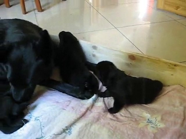 Schwarze Schäferhundwelpen am 12. Tag