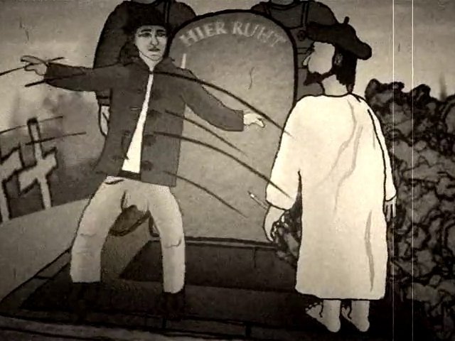 Animation movie based on a short story called "Ein Traum" (a dream) by Franz Kafka. It has been realized for lecture at the University of Applied Sciences, Duesseldorf. At first it was drawn on paper, scanned, colorized and animated mainly using the keframed puppet tool in After Effects CS3. The old movie look is handcrafted in flash CS3 and calculated with the colored version of this movie.