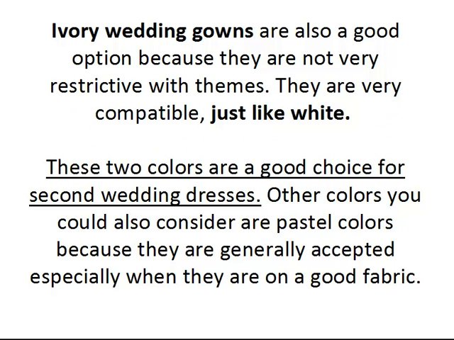 http://www.weddingplanningtricks.com Here is a FREE video that reveals 15 more tips you need to know before buying your second wedding dress. From Tracie Johnson Tracie Johnson's Blog: http://weddingplanningtricks.com/planningforwedding