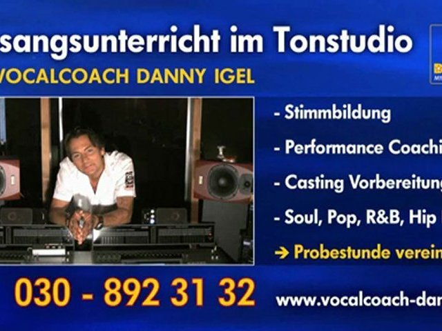 Ich liebe es Gesang zu unterrichten und dabei sein zu dürfen <br /> wenn meine Schüler immer besser werden und vielleicht dabei auch ein wenig glücklicher. <br /> Danny Igel <br /><br />Ihr seid Anfänger und wollt singen lernen? oder Ihr seid schon Fortgeschrittene und wollt Eure Technik verbessern? Profitiert von der langjährigen Erfahrung als Vocalcoach für klassische und moderne Gesangstechniken und der Zusammenarbeit mit bekannten nationalen und internationalen Künstlern und Produzenten. Probestunde vereinbaren unter.:030,8923132