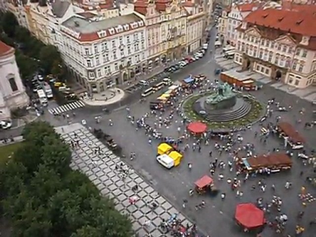 Fanfare de Prague dans une foire au goût un samedi à Prague, vue du haut de la tour de l'Hôtel de ville