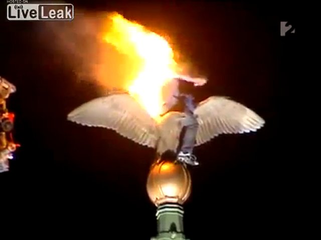 Crazy Man fängt Feuer, dann springt Bridge!