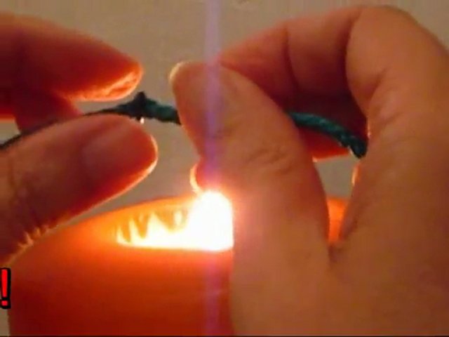 Polypropylen-Fäden haben den Vorteil, dass sie nicht verknotet werden müssen, sondern mit Hilfe einer Flamme verschweißt werden können. Hierzu eine kurze Anleitung. Aber Achtung, geschmolzenes Plastik ist kurzzeitig sehr heiß!