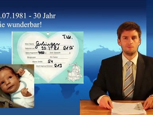 Rückblick zum 30. Geburtstag in Gewand der Tagesschau vom 30.07.2011. Im Anschluss folgt die Sendung "Videobotschaften an den Jubilar".<br /><br />Alles Gute lieber Dennis!
