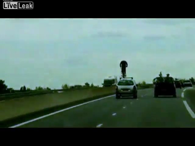 Ein Radfahrer Rides On The Freeway im dichten Verkehr