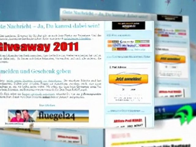 Am 1. Oktober 2011 startet das Deutsche Giveaway mit Volker Schiebel. Mit seinem Kollegen Uwe Ukenings und zahlreichen Internetmarketer veranstaltet er eines der groessten Schenkfeste im deutschsprachigen Raum. Haben Sie schon einmal bei einem Schenkfest mitgemacht? Ja, dann wissen Sie welch ein tolles Ereignis her auf uns zu kommt. NEIN? Ja, dann steht Ihnen dieses Ereignis noch bevor und ich will Ihnen da nichts vorwegnehmen. Nur so viel, einmal mitgemacht, nie wieder ein Giveaway verpassen. Schenken und beschenkt werden. Jetzt eintragen und mitmachen.