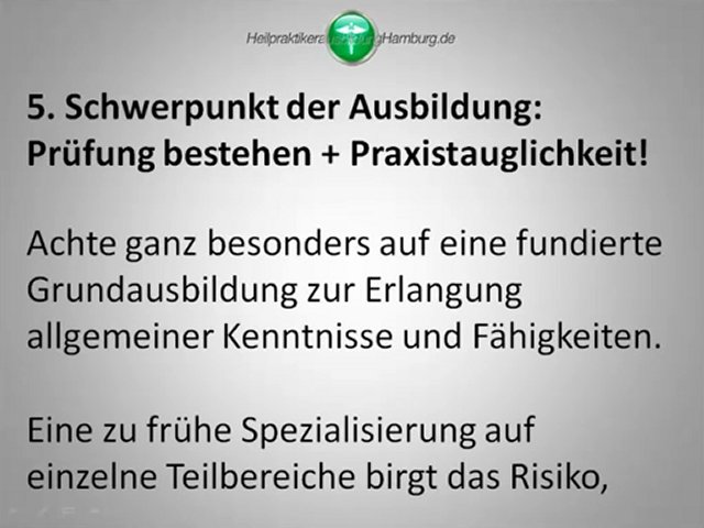 Die 6 wichtigsten Tipps um die passende Heilpraktikerschule in Hamburg zu finden. Was ist wirklich wichtig und worauf sollte man bei der Auswahl einer Heilpraktikerschule wirklich achten. Dieses Video klärt auf. Mehr Informationen erhalten Sie unter http://heilpraktikerausbildunghamburg.de