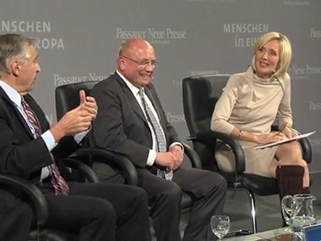 Die Macht der Marke<br />Diskussionsrunde mit Manager Dr. Martin Winterkorn, Vorstandsvorsitzender Volkswagen AG, Unternehmer Erich Sixt, Vorstandsvorsitzender Sixt AG, und Bankier Friedrich von Metzler, Gesellschafter der Privatbank Metzler<br />Moderation: Petra Gerster, ZDF heute<br />Medienzentrum der Verlagsgruppe Passau