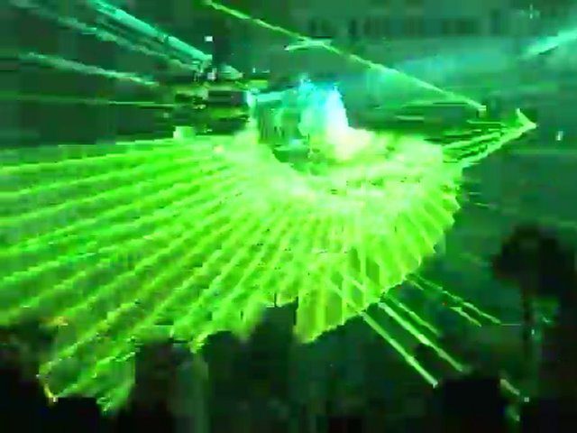 Beispiel einer Laser-Raumshow mit 3 Projektoren (1x RGB & 2x Grün) z.B. für Firmen-Events, Partys, etc.