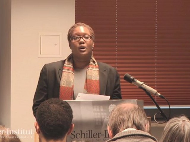 Portia Tarumbwa-Strid, Stellv. Vorsitzende des Schiller-Instituts, hielt diesen Vortrag bei der Mitgliederversammlung des Schiller-Instituts am 27. November 2011 in Frankfurt am Main.<br /><br />Stoppt die Dynamik zum 3. Weltkrieg<br />Reorganisation des bankrotten Weltfinanzsystems<br />Transpazifische Entwicklungsallianz jetzt!<br />Frankfurt, 27. November 2011<br />http://schiller-institut.de/seiten/20111127-frankfurt/