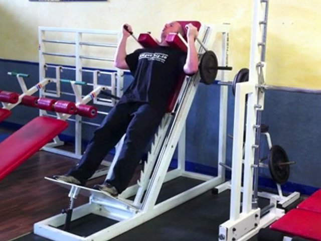 Übung für mehr Beinmuskeln - Hacken-Schmidt-Kniebeugen in der Maschine