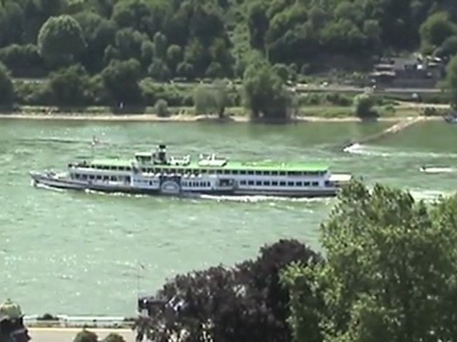 Gefilmt am 10.07.10 an der rechten Rheinstrecke bei Assmannshausen. Gegenüber befindet sich die Burg Rheinstein. Links davon befindet sich der Ortsanfang von Trechtingshausen mit der linken Rheinstrecke und der Burg Reichenstein auf dem Berg darüber. <br />Die Burg Reichenstein ist zum Schluß des Videos groß im Bild.