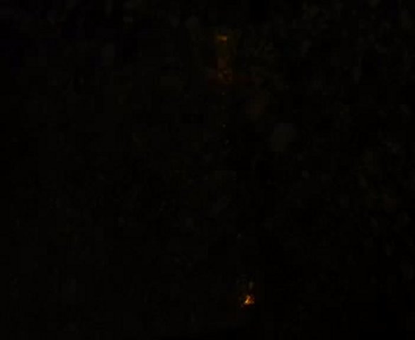 Tribolumineszenz von Mangan-dotiertem Zinksulfid (ZnS:Mn). <br />Erhitzt man eine Mischung aus 2 Teile Zinkoxid, -carbonat oder ein anderes zersetzliches Zinksalz mit 1 Teil Schwefelpulver und 0,005 Teilen Mangandioxid (Braunstein) für einige Minuten auf Rotglut entsteht Zinksulfid mit etwas Mangan im Kristallgitter. Dieser Stoff ist tribolumineszent, d.h. er leuchtet (hier orange) wenn die Kristalle zerstört werden.