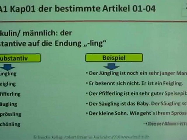 Wir lernen einige Regeln zum Geschlecht der deutschen Substantive.<br />Maskulin, männliche Substantive auf die Endung "-ling"