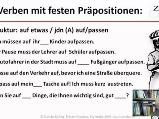 Wir übenim Zusammenhang mit den Verben mit festen Präpositionen die Deklination. Hier das Verb "aufpassen auf + A.<br />Created with MAGIX Video deluxe MX