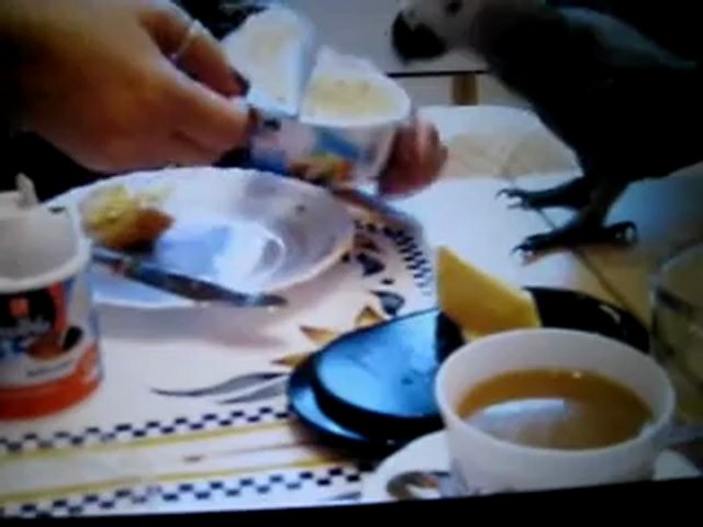 Rudi unsere Kongo Graupapagei und Esszimmer. http://www.Fella.de