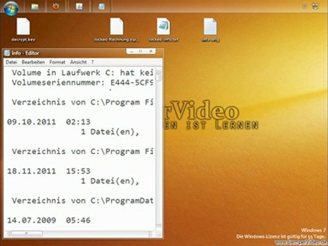 In diesem Video einige Ergänzungen zu dem Update Virus und seiner Fähigkeit Dateien auf dem befallenen System zu verschlüsseln.<br /><br />Bitte ein Okay an http://www.youtube.com/RSITService<br /><br />http://www.youtube.com/watch?v=Z1irybtZy4M<br /><br />http://matthi.org/DecryptHelper-0.5.jar<br /><br />http://www.trojaner-board.de/114115-wiederherstellung-verschluesselten-dateien-rechnung-exe-realtecdriver-exe-schadsoftware-26.html