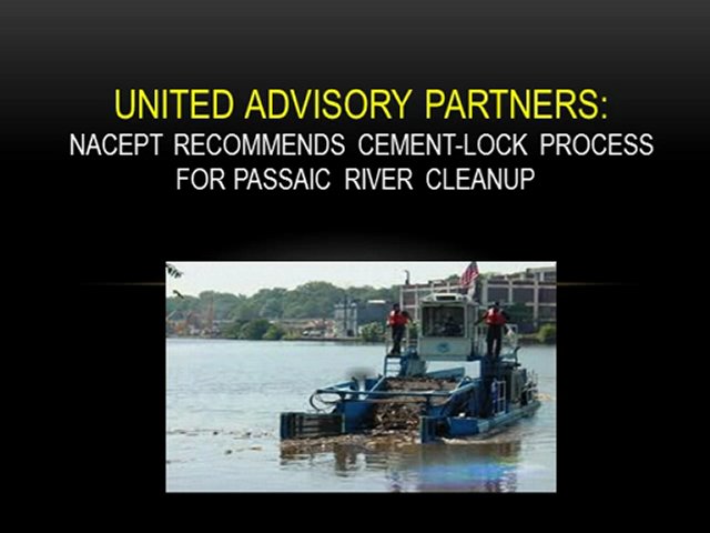 The US Environmental Protection Agency, which has determined the Passaic River to be a Superfund site, has been advised by the National Advisory Council for Environmental Policy and Technology (NACEPT), an advisory board established by the EPA, that the Cement-Lock process is suitable as a way to begin cleaning up the Lower Passaic River and Newark Bay.