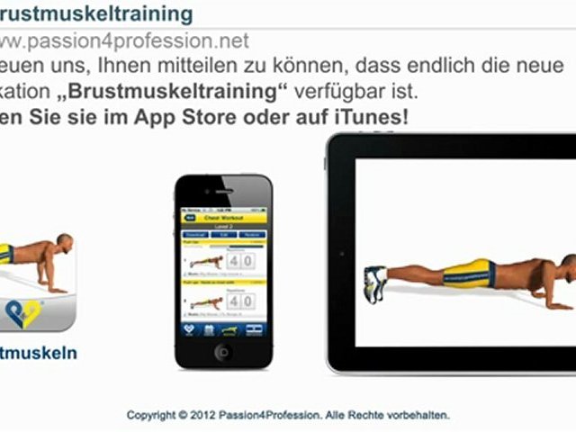 Wir freuen uns, Ihnen mitteilen zu können, dass endlich die neue Applikation „Brustmuskeltraining" verfügbar ist. Suchen Sie sie im App Store oder auf iTunes!<br />Begleiten Sie uns!<br />P4P Deutschland - http://www.dailymotion.com/P4PDeutsch<br />Facebook: http://www.facebook.com/pages/Passion4Profession-Inc/123267949096<br />Twitter: https://twitter.com/#!/P4P_Inc !<br /><br />P4P Official: http://www.passion4profession.net/de/