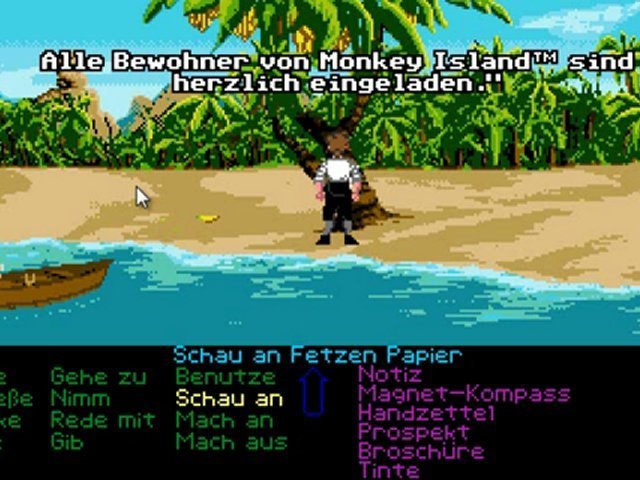 Nun werfen wir noch ein par Sachen in das leckere Süppchen, da macht es auf einmal "BUMM" und das Schiff gerät auf unbekannten Kurs. Als wir aus einer Ohnmacht aufwachen liegen wir vor Monkey Island™! Schnell hin!