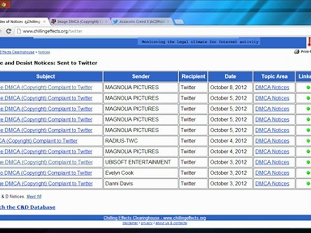 In diesem Video nur der Hinweis auf Urheberrechtsverletzungen auf Twitter.<br /><br />http://www.chillingeffects.org/twitter