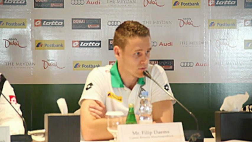 Pressekonferenz in Dubai mit Daems und Max Eberl