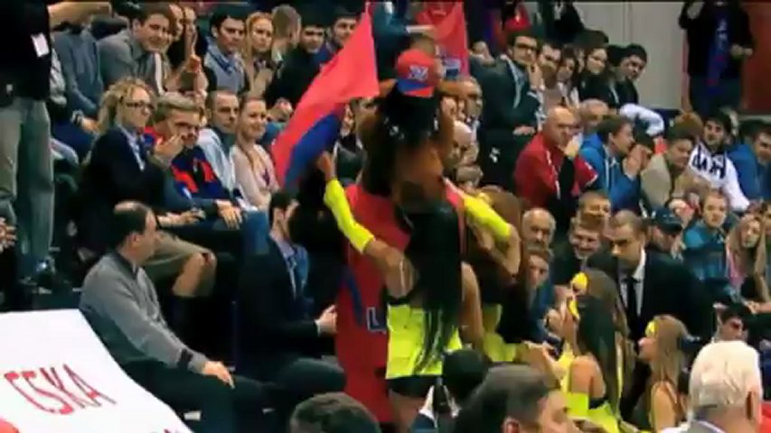 Während einer Viertelpause beim Euroleague-Spiel zwischen ZSKA Moskau und Panathinaikos machte sich das russische Maskottchen auf in Richtung Fans. Der Freundin des Maskottchens rutschte dann das Herz in die Hose.
