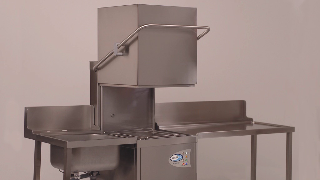 http://www.classeq.net Bei der Erstinbetriebnahme des eingebauten Wasserenthärters der Hauben-Spülmaschine Hydro 857 müssen zunächst alle Anschlüsse geprüft werden. Danach wird die Wasserhärte bestimmt und die untere Frontblende abgeschraubt. Ein Aufkleber informiert, wie der Enthärter auf die Wasserhärte eingestellt wird. Danach wird der Salzbehälter der Spülmaschine mit Wasser und Salz gefüllt.