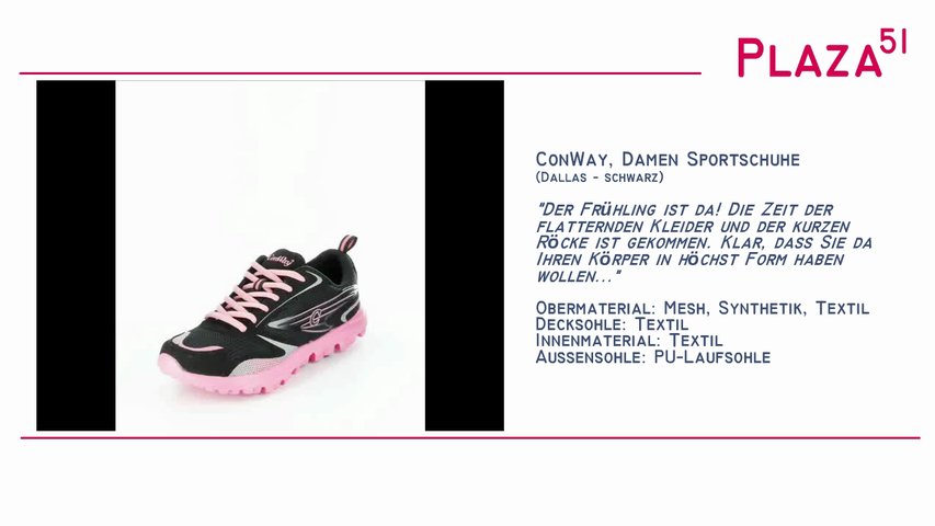 Der Frühling ist da! Die Zeit der flatternden Kleider und der kurzen Röcke ist gekommen. Klar, dass Sie da Ihren Körper in höchst Form haben wollen. <br /><br />Mehr zu dem hier vorgestellten Schuh: <br />ConWay, Damen Sportschuhe - Dallas - schwarz http://bit.ly/13u60BF <br />oder auch hier zu finden: http://bit.ly/15JtgQ3
